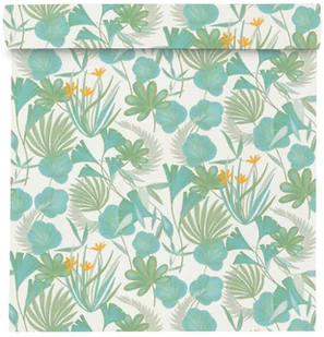 Rasch 466621 liście i rośliny w kolorze niebieskim, pomarańczowym i białym z kolekcji Salsa-10,05 m x 0,53 m (dł. x szer.) tapeta na fizelinie