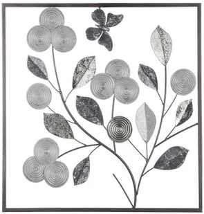 Indywidualny charakter wnętrza tworzą starannie dobrane dekoracje zgodne z aktualnymi trendami i reprezentujące gusta gospodarzy. Nowoczesna dekoracja marki Atmosphera w formie dwukolorowej metaloplastyki. Obraz w metalowej ramie o wymiarach 50 x 50 cm składa się ze malowanych na srebrno i stare złoto dekoracyjnych elementów. Całość jest trójwymiarowa i nie posiada własnego tła - tłem do tej dekoracji będzie kolor Twojej ściany.