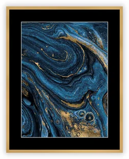 Oryginalny obraz w ramie przedstawiający głębie oceanu, wykonany metodą pouringu. Zwraca uwagę wyjątkową tajemniczością oraz pięknymi barwami. Zdobiony efektownym złoceniem orazoprawiony w grubą, złotą ramę tworzy niezwykle elegancką dekorację ścienną. Jego tajemniczy charakter, podkreślony przez czarne passe partout, wspaniale sprawdzi się w stylowej sypialni lub salonie. Doskonale wygląda w komplecie z drugim obrazem z tej samej Abstract Blue&Gold I.