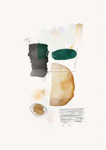 Nowoczesny obraz drukowany na płótnie. Jest to abstrakcyjna kompozycja z różnymi kształtami w kolorach zielonym, czarnym i musztardowym na jasnoszarym tle. Oryginalna dekoracja ścienna posiada niepowtarzalny wzór zaprojektowany przez naszego artystę - projektanta. Malarstwo abstrakcyjne jest symbolem nowoczesności. Wyróżnia je swobodne przenikanie się form i kolorów.