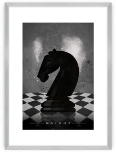 Czarno- biały plakat ze stylowym motywem szachowej figury - skoczka, potocznie określanego jako konik. Plakat został oprawiony w białą, wbudowaną ramę z passe partout. Grafika wydrukowana została na papierze satynowym bez połysku o gramaturze 200g. Plakat można kupić bez ramki, jednak dla uzyskania lepszego efektu dobierz pasującą ramkę. Pozwoli Ci to na stworzenie kompletnej galerii na ścianie.