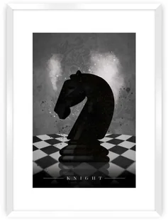 Czarno- biały plakat ze stylowym motywem szachowej figury - skoczka, potocznie określanego jako konik. Plakat został oprawiony w białą, wbudowaną ramę z passe partout. Grafika wydrukowana została na papierze satynowym bez połysku o gramaturze 200g. Plakat można kupić bez ramki, jednak dla uzyskania lepszego efektu dobierz pasującą ramkę. Pozwoli Ci to na stworzenie kompletnej galerii na ścianie.