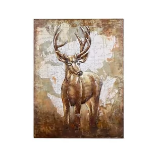 Obraz metalowy 3D LOFT NATURAL JELEŃ 2 - metalowy obraz 3D wykonany z recyklingowej stali - realne wypukłości nadające niesamowitego trójwymiarowego efektu - kolorystyka uzyskana za pomocą farb lub naturalnych przebarwień i korozji - impregnacja bezbarwnym lakierem gwarantuje zachowanie barw oraz odporność na zarysowania - obraz przedstawia jelenia na tle mapy świata Obraz 3 D to prawdziwe dzieło sztuki, które posiada niesamowity design. Obraz został wykonany ze stali z odzysku, co dodatkowo podkreśla jego oryginalność. Dekoracja przedstawia dumnego jelenia i została utrzymana w ciemnej kolorystyce, dzięki czemu idealnie wpiszę się w stylistykę loftową. Dodatkowym akcentem dekoracyjnym i zwracającym uwagę jest tło obrazu w postaci mapy świata. Oprócz naniesionych kolorów obraz posiada szeroką paletę barw uzyskanych w sposób naturalny, m.