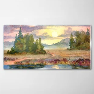 Obraz Szklany akwarela drzewa zachód słońca 120x60 cm