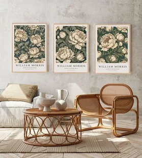 ZESTAW 3 plakatów Morris kwiaty piwonie ilustracja