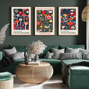 ZESTAW 3 plakatów Yayoi Kusama abstrakcja grzyby