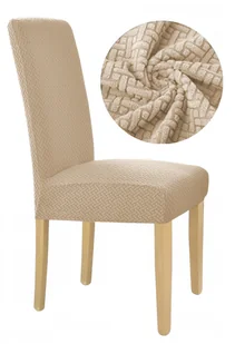 Pokrowiec na krzesło BEŻOWY ŻAKARD ✅ Pokrowce na krzesła marki Ubieramy meble wykonane są z elastycznego materiału, dzięki czemu dopasują się do niemal każde...