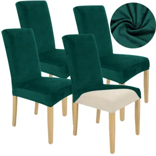 ZESTAW 4SZT. POKROWIEC NA KRZESŁO BUTELKOWA ZIELEŃ WELUR ELASTCZYNY [21WD-4SZT]