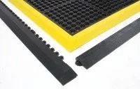 Otwory drenujące skutecznie odprowadzają rozlane ciecze. Bardzo dobre właściwości antyzmęczeniowe do długotrwałej pracy na stojąco. Przetestowana pod kątem poślizgnięć zgodnie z DIN 51130. Opcjonalnie: wzmocnione żółte lub czarne krawędzie.