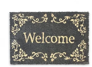 Relaxdays Kokos Welcome wycieraczka z włókna kokosowego z antypoślizgowym spodem PCW, do wnętrz i na zewnątrz, czarna, wymiary: 40x60 cm 10016789