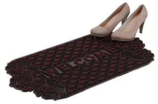 Relaxdays wycieraczka do nóg wycieraczka Welcome, podłogowa na zewnątrz, czarna, wycieraczka z motywem, 75 x 45 cm, czarno-różowy 10022245