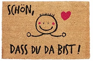 naturalny, z czarnym napisem Antypoślizgowa mata na drzwi do domu - Nadaje się do wnętrz i na zewnątrz - Utrzymuje brud z dala od domu - Kokos jest wytrzymały i wodoodporny - Antypoślizgowa powłoka PVC - Ciepłe powitanie dla gości - Fajny pomysł na prezent dla przyjaciół Zakres dostawy - 1 x wycieraczka kokosowa - ElementyReplika acyjne nie wchodzą w zakres dostawy