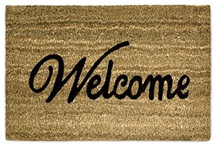 Relaxdays WELCOME wycieraczka z motywem kokosowym, 40 x 60 cm, mata kokosowa z antypoślizgową podkładką z PCW, wycieraczka z włókna kokosowego jako mata zatrzymująca brud i wycieraczka do użytku na