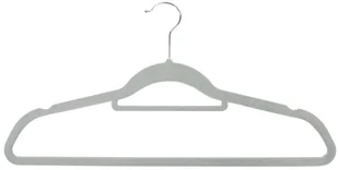 Wieszak welurowy maxi szary 5 szt. Uniwersalny wieszak welurowy idealnie nadaje się do wieszania zarówno górnej jak i dolnej części garderoby. Materiał wykonania oraz wcięcia zapobiegają ześlizgiwaniu się ubrań. Elegancki kolor sprawia, że wieszak jest nie tylko poręcznym, ale też estetycznym dopełnieniem garderoby czy szafy. W komplecie 5 sztuk.