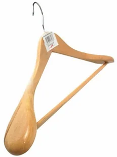 Wieszak Emil wykonano z naturalnego drewna, zabezpieczonego lakierem. Dzięki temu garderoba będzie się prezentować świetnie zarówno w szafie, jak i na stojakach w ekskluzywnym butiku.