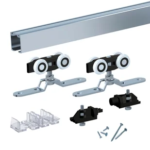 Długość prowadnicy jezdnej może być samodzielnie skracana do wartości odpowiadającej danej szerokości drzwi. a. uniwersalne zastosowanie do podziału pomieszczeń, montaż naścienny z użyciem klamer ściennych, sufitowy lub chowany w ściennej kasecie, b. unikalna konstrukcja wózków prowadzących sprawia, że przesuwają się one w prowadnicy wyjątkowo cicho i łagodnie, co gwarantuje delikatny i płynny przesuw drzwi, c. szeroka oferta akcesoriów dodatkowych ułatwiających montaż oraz zwiększających komfort użytkowania: klamry ścienne, domykacz, mocowania do maskownicy drewnianej, szczotka uszczelniająca, d.
