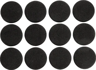 Parametry Ilość [szt.]: 12 Wielkość [mm]: 28 Kształt: okrągłe Materiał: EVA Kolor: czarny Taśma samoprzylepna: tak