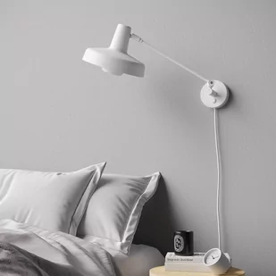 Regulowana lampa ścienna Arigato z kablem wtykowym i przełącznikiem Lampa ścienna Arigato chorwackiej firmy Grupa ma ponadczasowy, monochromatyczny design - idealny do wielu koncepcji wyposażenia wnętrz. Nadaje się nie tylko do oświetlenia uzupełniającego i obszarowego w salonie, ale dzięki zminimalizowanemu efektowi olśnienia zapewnia również idealne światło w gabinecie. W tym celu wyposażona jest w osłonę, za którą można umieścić źródło światła. Ponadto dzięki lakierowanemu na biało wnętrzu klosza wykonanego z aluminium uzyskano efektywną emisję światła. Przeguby przy mocowaniu ramienia i klosza umożliwiają ustawienie i wyrównanie klosza według potrzeb.