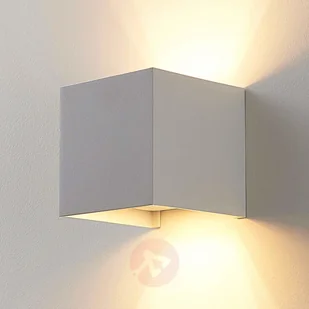 Biała, kanciasta lampa ścienna LED Zuzana ze ściemnianą żarówką i możliwością regulacji kąta padania światła Zuzana składa się z aluminiowego korpusu w kształcie sześcianu i ma proste wykończenie w kolorze białym, które jest bardzo ponadczasowe i może być łączone z wieloma elementami aranżacji wnętrz. Zastosowana w lampie żarówka G9 jest nie tylko wyposażona w technologię LED, ale stanowi również jedno ze ściemnianych (zewnętrznie) źródeł światła. Należy również zwrócić szczególną uwagę na efekt świetlny, który jest widoczny tylko wtedy, gdy lampa jest załączona. W zależności od ustawienia, światło jest następnie emitowane w górę i w dół pod równie szerokim kątem lub składa się ze snopa wąskiego i szerszego, który można uzyskać na górze lub na dole.