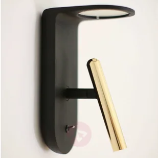 Z reflektorem punktowym LED w złotym kolorze - szykowna lampa ścienna LED 2Nights_W2 Kinkiet 2Nights_W2 LED, który jest ozdobiony smukłym reflektorem LED, prezentuje się jako eleganckie połączenie czerni i złota. Dzięki swojej szlachetnej złotej farbie skutecznie wyróżnia się na tle innych, raczej ciemnych kolorów. Zdobywa również punkty za wysoką elastyczność, ponieważ można go obracać i obracać za pomocą przegubu. Dzięki temu biała, ciepła dioda LED świeci nie tylko w dół, co sprawia, że oprawa jest idealną lampą do czytania. Możliwe jest również skierowanie reflektora do góry, tak aby oświetlał okrągły klosz.