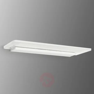 Chudy - lampa ścienna LED o stopniu ochrony IP44 Skinny to lampa ścienna LED w kształcie półki świetlnej, zaprojektowana w jasnym i eleganckim stylu, łącząca nowoczesną technologię z minimalistyczną elegancją. Aluminiowy wspornik lampy jest pomalowany białym lakierem termokurczliwym, co nadaje mu lekko ustrukturyzowaną powierzchnię. Dyfuzor polimetakrylanu metylu został zadrukowany techniką sitodruku laserowego. Lampa ścienna LED Skinny o szerokości 70 cm jest idealna do montażu nad lustrem w łazience.