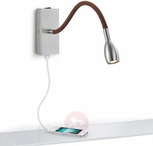 Milos - elastyczny kinkiet LED z brązowym giętkim ramieniem i ładowarką USB