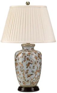 E27 Stopień odporności na wnikanie ciał stałych i wilgoci: IP20 Gwarancja: 2 lata Lampa stołowa Gold Birds & Berries Elstead Lighting Dekoracyjna oprawa w kolorze biało-złotym W portfolio angielskiej marki Elstead Lighting znajdziemy szeroką gamę efektownych lampy stołowych z ceramicznymi podstawami. Eleganckie wazy o ciekawych kształtach pokryte są dekoracyjnymi wzorami, co sprawia, że całość staje się małym dziełem sztuki. W przypadku lampy stołowej Gold Birds & Barries ceramiczna podstawa w kolorze szarym została ozdobiona eleganckim wzorem w odcieniach złota.