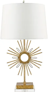 Lampa stołowa złota słońce z kryształkami glamour Sun King E27 60W Gilded Nola