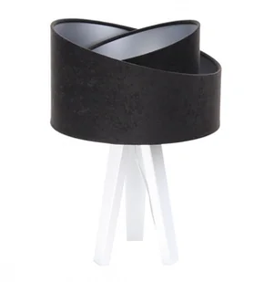 Abażur lampy wykonany jest z zamszowej tkaniny tapicerskiej w kolorze czarnym. Wnętrze abażura to delikatna srebrna apla.