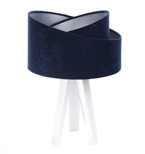 Abażur lampy wykonany jest z zamszowej tkaniny tapicerskiej w kolorze granatowym. Wnętrze abażura to delikatna srebrna apla.