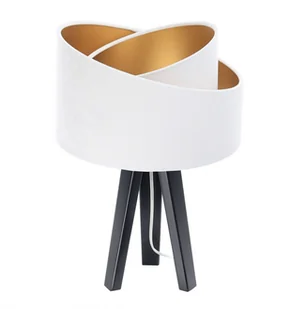 Abażur lampy wykonany jest z zamszowej tkaniny tapicerskiej w kolorze białym. Wnętrze abażura to delikatna złota apla.