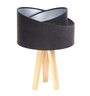 Abażur lampy wykonany jest z zamszowej tkaniny tapicerskiej w kolorze czarnym. Wnętrze abażura to delikatna srebrna apla.