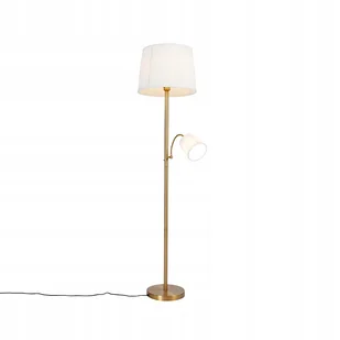 Klasyczna lampa podłogowa brąz abażur z tkaniny biały z lampką do czytania