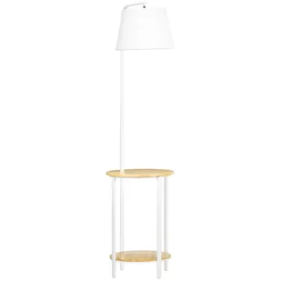 Nowoczesny design: Dzięki naturalnemu bambusowemu blatowi, materiałowemu kloszowi i metalowej ramie ta lampa podłogowa jest prawdziwym atutem dekoracyjnym. Idealna do każdego pomieszczenia wymagającego oświetlenia akcentującego. Dwie półki: Dwie półki oferują dużo miejsca do przechowywania i eksponowania.