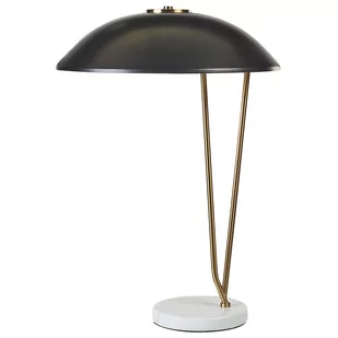 Nowoczesna lampa stołowa z marmurową podstawą. Ta lampa stołowa jest ucieleśnieniem elegancji i nowoczesności. Posiada okrągły czarny metalowy klosz, stylowo kontrastujący z marmurową podstawą i złotymi nóżkami. Jej design jest nie tylko czarujący, ale również i praktyczny — dzięki szerokiemu kloszowi lampa dobrze się sprawdzi w sypialni lub salonie do czytania, a nawet w domowym biurze podczas pracy. Szczegóły: Typ produktu: