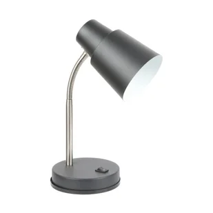 Lampa biurkowa 1 punktowa z regulowanym położeniem źródła światła. Elementy metalowe wykończone w kolorze czarnym i w kolorze chromowanym - satynowym. Lampa posiada regulowane elastyczne ramię.