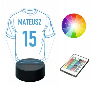PERSONALIZOWANA LAMPKA NOCNA Z IMIENIEM KOSZULKA PIŁKARSKA Ciemność jest prawdopodobnie największym problemem przez który nasze pociechy nie chcą zasypiać w swoim pokoju lub w środku nocy przychodzą do rodziców. Teraz możesz to zmienić dzięki naszej lampce nocnej z ulubionym bohaterem swojego dziecka! Nasza personalizowana lampka rozświetli pokój w nocy dzięki czemu dziecko poczuje się bezpieczniej, a dodatkowym atutem będzie wybór ulubionego koloru, ulubiony bohater oraz imię dziecka wygrawerowane na lampce! Lampka posłuży również w dzień jako dekoracja pokoju. Świetnie nada się jako prezent na urodziny, święta lub inną okazję. PO ZAKUPIE KONIECZNIE PODAJ IMIĘ DZIECKA ORAZ NUMER NIE PODANIE IMIENIA I NUMERU MOŻE WYDŁUŻYĆ REALIZACJĘ!!! OPIS PRODUKTU: Element podświetlany wykonany jest z wysokiej jakości nietłukącej się płyty akrylowej, podstawka z ABS.