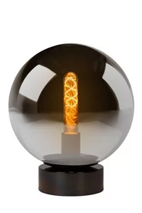 Szklana lampa stołowa Jorit z kulistym kloszem Na czarnym cokole znajduje się szklana kula o przydymionej powierzchni - w takiej pięknej formie lampa stołowa Jorit prezentuje się doskonale zarówno w salonie, jak i na stoliku nocnym w sypialni. Dzięki przydymionemu kloszowi lampa zapewnia przytulne światło, które można włączać i wyłączać za pomocą przełącznika na kablu. Źródło światła jest widoczne od zewnątrz przez szklany klosz, dlatego zaleca się zastosowanie żarówki LED przypominającej żarówkę żarnikową z przezroczystą szklaną kolbą.