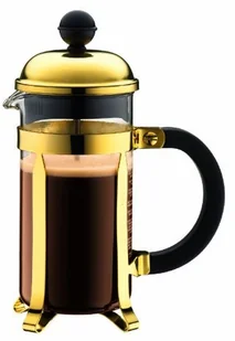 Tłokowy zaparzacz do kawy Chambord marki Bodum. Pojemnik zaparzacza wykonany jest ze szkła borokrzemowego (wysoka czystość, odporność na różnice temperatur, nie reaguje chemicznie z parzona kawą)