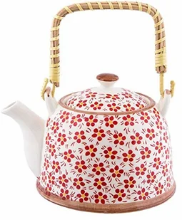 Clayre & Eef Czajniczek z filtrem 700 ml Czerwone ceramiczne kwiaty