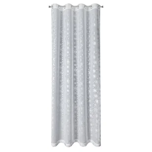 Firana SNOW z delikatnej białej tkaniny zdobiona srebrzystym nadrukiem w postaci równomiernie rozmieszczonych płatków śniegu. Półtransparentna tkanina chroni przed nadmiarem słonecznych promieni, zapewniając jednocześnie doświetlenie wnętrza naturalnym światłem. Firana została wyposażona w przelotki, które umożliwiają szybki i wygodny montaż bezpośrednio na karniszu drążkowym. Przelotki sprawiają, że firana efektownie układa się w miękkie, regularne fale. . DEKORACJA OKIENNA.
