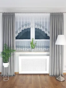 Firanka do kuchni z haftem, zazdrostki-szara, firanki do kuchni