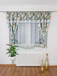 KRÓTKA FIRANKA GOTOWA Z ZASŁONAMI I HAFTEM ZIELONE LIŚCIE FIRANKI DO KUCHNI SALONU SYPIALNI WOAL NA TAŚMIE Firana gotowa z woalu w odwrócony łuk z zasłonkami...