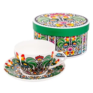 Filiżanka Małgosia w pudełku do kawy i herbaty 300ml koguty łowickie