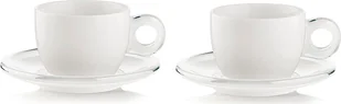 Zestaw dwóch filiżanek do cappuccino. Oryginalny zestaw filiżanek + spodki do cappuccino Guzzini przypadnie do gustu każdemu miłośnikowi kawy. Filiżanki wykonano z białej ceramiki i tworzywa sztucznego. Zaokrąglone kształty i klasyczny design prezentuje się niezwykle pięknie. Wymiary: Pojemność: 2 x 260 ml Materiał Tworzywo sztuczne Ceramika Kolor Biały szary Przeznaczenie Do cappuccino.