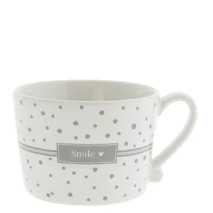 Biały kubek z malutkim serduszkiem i napisem "Smile" w kolorze szarym holenderskiej marki Bastion Collections. Wymiary: 10 x 8 x 7 cm Pojemność: 300 ml Można...