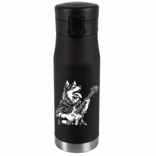 Kubek Termiczny Grawer Prezent Imieniny Urodziny Srebrny PIES Z GITARĄ 007