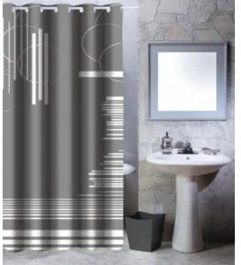 MSV Anty-pleśniowa tekstylna zasłona prysznicowa – antybakteryjna z 12 pierścieniami do zasłony – poliester, "Graphics" szara, 180 x 200 cm