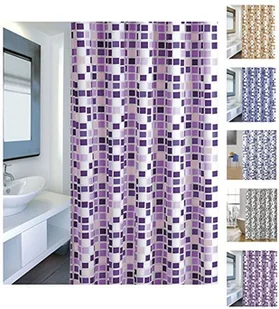 Cotexsa by MSV 142101 zasłona prysznicowa z materiału antypleśniowego, antybakteryjna, z 12 pierścieniami do zasłony prysznicowej "Mosaik", fioletowa, 180 x 200 cm