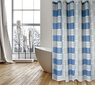 MSV cotexsa by Premium Anti-Schimmel zasłona prysznicowa tekstylna antybakteryjna, nadaje się do prania, 100% wodoszczelna, z 12 oczkami do zasłony prysznicowej poliester, "CERAMIQUE" Niebieski 180 142144